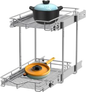- SLIDE-OUT DRAWER & STABLE STRUCTURE: The 2-tier storage organizer features two pull-out drawers with tracks to prevent swaying during use and built-in handle makes it easily to access hard-to-reach things. In addition, the bottom and top is fitted with 8 silicone non-slip pads for ensuring stability when pulling the organizer drawer out.